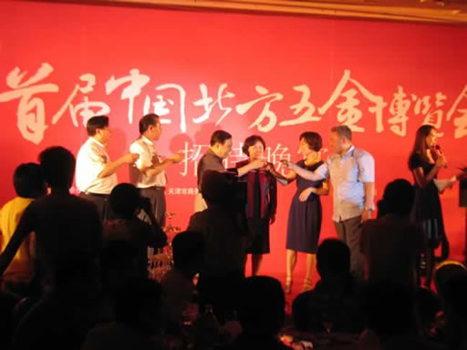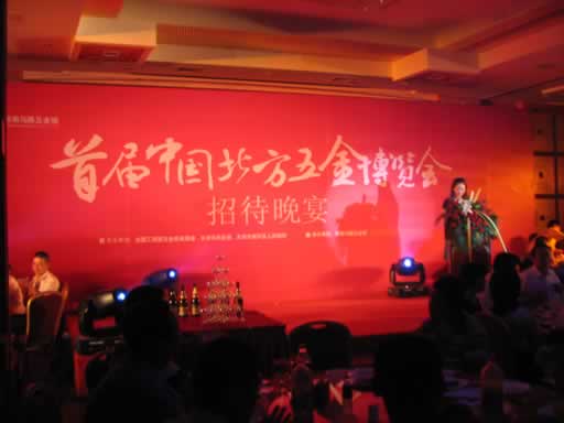 由全国工商联五金商会、天津市商务委、天津市南开区政府主办,天津新南马路五金城承办的首届中国北方五金博览会招待晚宴,于2010年6月26日18:00开始,在天津汇高花园酒店二楼汇高厅举行,与会嘉宾有全国工商联五金商会、天津市商务委、天津市南开区政府的领导,及全国工商联五金商会各地方商会的代表,近300人参加。 招待晚宴还穿插了曲艺、魔术、舞蹈、歌唱等节目表演,晚宴在热烈和谐的气氛中圆满结束。