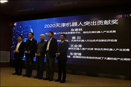 颁发2020年天津机器人突出贡献奖 要进一步发挥天津市机器人与智能制造产业技术创新战略联盟、天津市机器人产业协会、天津市机器人学会的平台和纽带作用,强化产业链配套能力,深化两业融合程度,形成生产性服务业与机器人产业相互支撑促进,产业链协同、分工协作的良好生态,走上产业链创新链融合发展新路径,将天津打造成机器人自主创新的重要源头和原始创新的主要策源地。