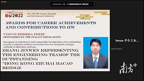日前,国际焊接学会第75届年会在日本东京举行,广州航海学院教授张劲文领衔的工程团队荣获2022年国际焊接学会“Ugo Guerrera Prize”大奖,以表彰他们为港珠澳大桥钢结构制造创新作出的卓越贡献。