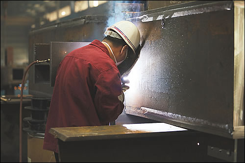 4月25日,记者来到位于长丰县的安徽鸿路钢结构(集团)股份有限公司,嘈杂的厂房里,杨军穿着枣红色的工作服,手上拿着防护面罩,正一丝不苟地做着焊接工作。他丝毫不畏惧四处飞溅的焊花,不一会儿,一个堪称完美的焊接作品就展现在记者眼前。 如今,电焊是杨军的看家本领,也是他热爱的一项事业。可当初刚学电焊时,杨军曾打过“退堂鼓”。1999年,杨军初中毕业后,在老家舒城学焊工。当时,比起瓦工、木工,焊工工资高,更吃香。可没学多久,杨军就不想干了。工作中,焊花飞溅,稍不注意,皮肤就会被烫伤,最难受的是眼睛,强光刺激下,双眼又红又肿,连觉也睡不着。 2003年,他进入鸿路钢构,工作上接踵而至的挑战,让他意识到,电焊里的门道还很多,尤其是厚板焊接和异性钢构焊接,得加强学习才能不被淘汰。 当时,公司聘请了参与北京鸟巢建设的焊接工艺师给工人讲课,杨军一边学习理论,一边在实践中琢磨,通过不懈努力,他取得了焊接高级证,焊接技师证,特种设备无损检测(UT)二级等多个证书,并多次在合肥市职业技能大赛中获奖。