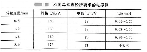 焊接回路电感主要是控制短路电流上升速度及短路电流峰值。短路过渡CO2焊要求具有合适的短路电流上升速度,从而将缩颈小桥控制在焊丝与熔滴之间,以保证爆破力将大部分熔滴金属过渡到熔池中。同时还要求具有合适的短路电流峰值,以使爆破能量适中,不至于产生很大的细颗粒飞溅。不同的焊丝直径要求不同的短路电流上升速度,焊丝越细,熔化速度越大,短路过渡频率越大,要求的短路电流上升速度就越大。因此,焊接回路中应根据焊丝直径选择适当的电感,这里列出了不同直径的焊丝所要求的电感值。
